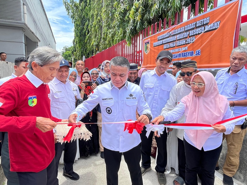 PALU-Wali Kota Palu, H. Hadianto Rasyid, SE, secara simbolis meresmikan hasil pekerjaan infrastruktur rabat beton RT/RW di wilayah Kelurahan Besusu Barat, Rabu (03/09/2025).