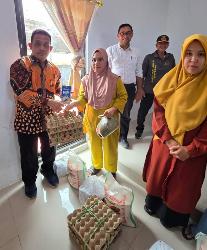 Usai memberikan sambutan dilanjutkan dengan penyerahan secara simbolis. Bantuan paket pangan bergizi bagi Stunting diberikan kepada setiap keluarga yang memiliki balita dan ibu hamil/menyusui dengan pendekatan intervensi sensitif, berupa: beras 10 kg, kacang hijau 3 kg, telur 90 butir dan susu UHT 4000 ml.