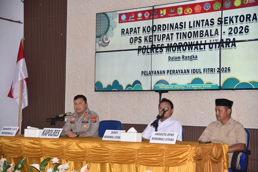 MORUT-Kepolisian Resor Morowali Utara menggelar rapat koordinasi (rakor) lintas sektoral dalam rangka menghadapi Operasi Ketupat Tinombala-2026. Sebanyak 221 personel gabungqn diturunkan untuk mengawal masyarakat yang akan melaksanakan mudik Lebaran 2026 di wilayah Kabupaten Morowali Utara. Rabu (11/3/2026)
